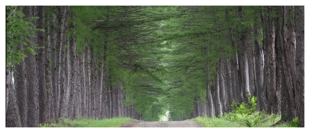 シラカバ並木(上)、トドマツの実生(下)
