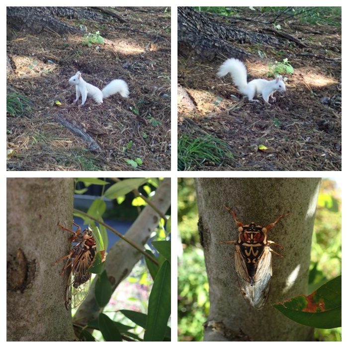 Art stone carvings along the walking path and mushrooms found along the way.