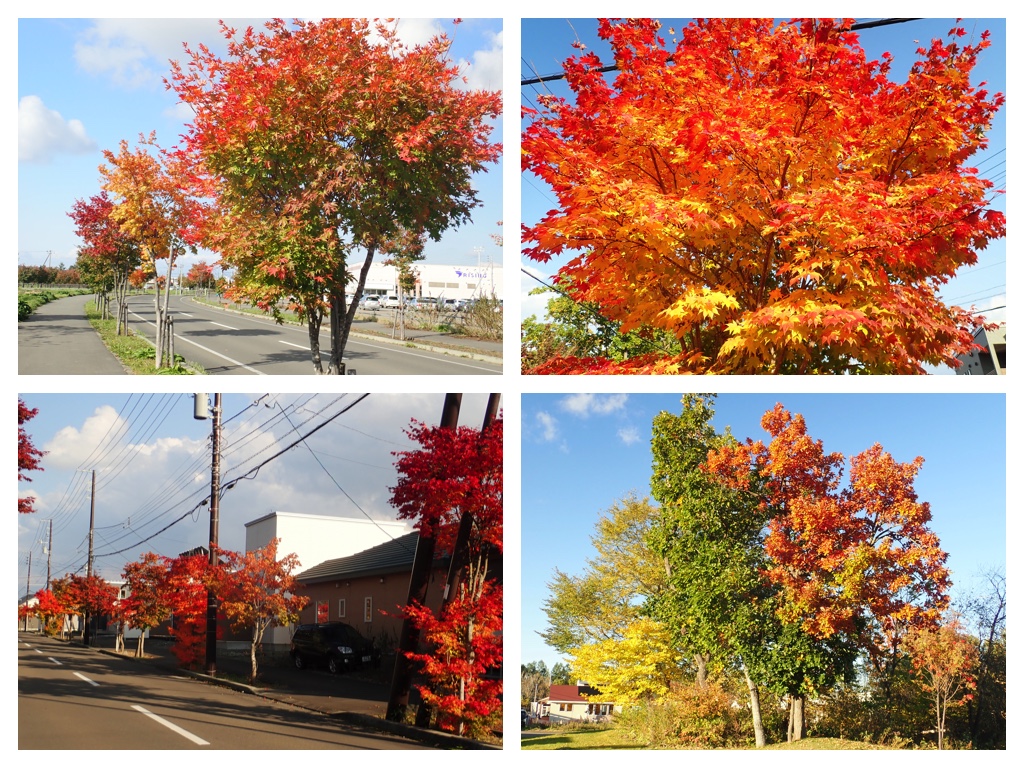 Colored leaves of the roadside trees in Seiryu, Obihiro. 帯広市清流地区の街路樹。