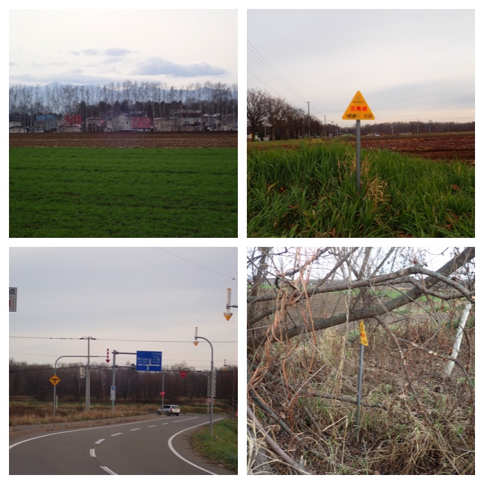 上:川西町西7号南15線(95.8 m)および下:西5号南14線付近(85.1 m) の三角点。