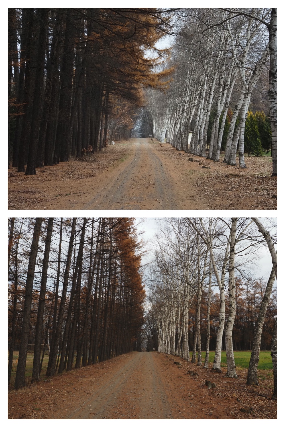 農業高校のカラマツ並木の季節変化。 Seasonal change of the Larch tree array of Obihiro Agricultural High School. | November 25, 2025