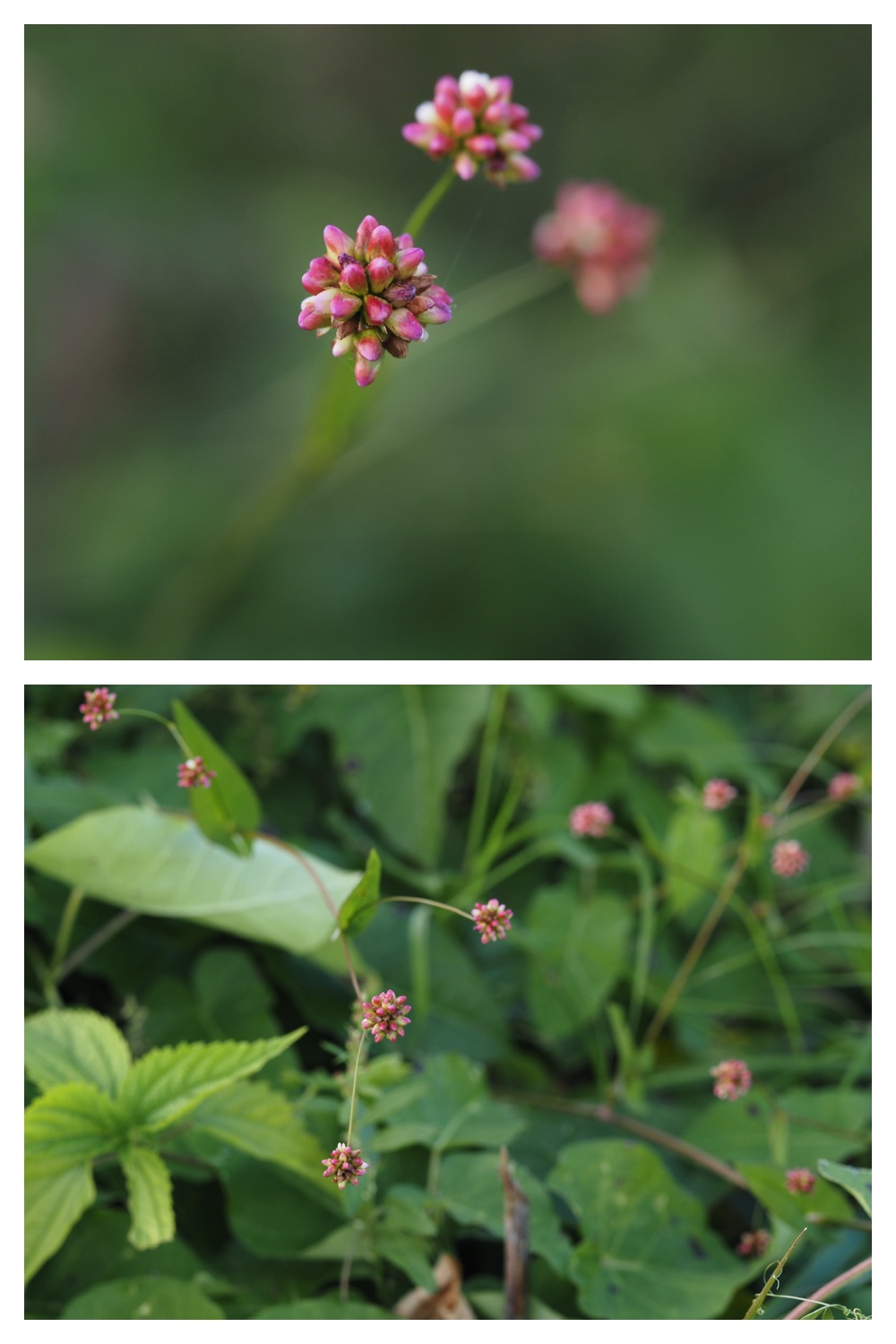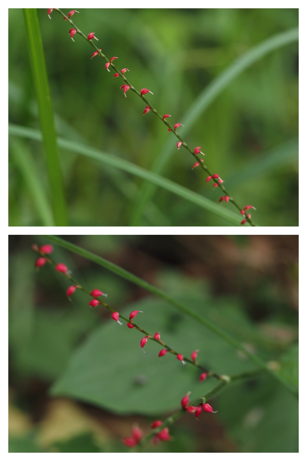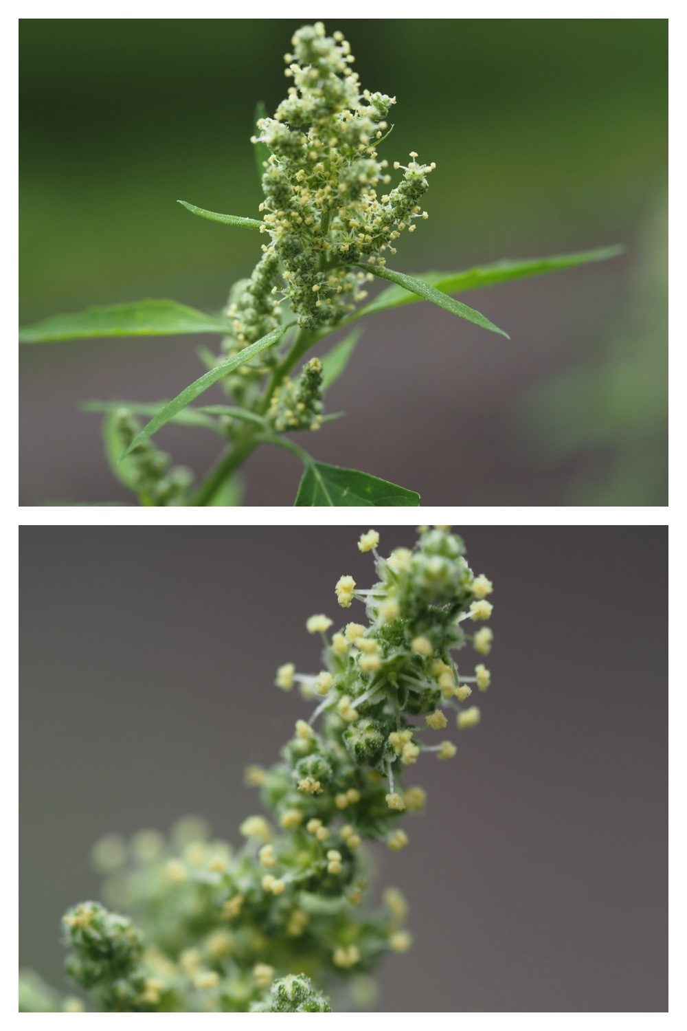 イヌビユの花穂(上)、エゾノギシギシの花穂(下)