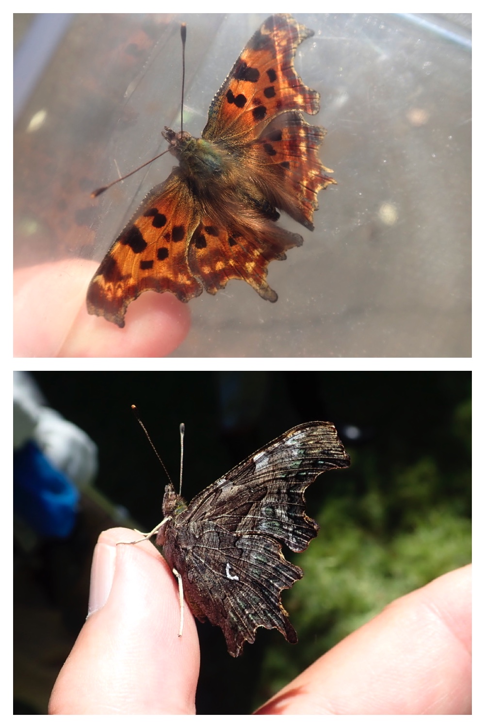 同定後放チョウされたオオウラギンスジヒョウモン(上・下)