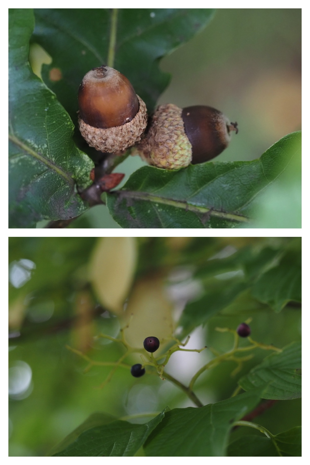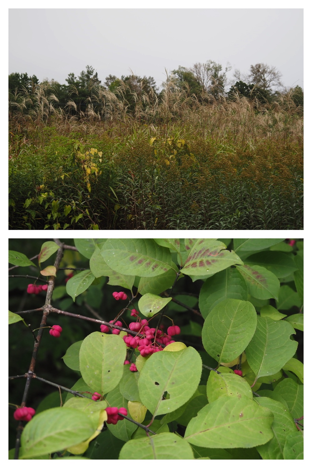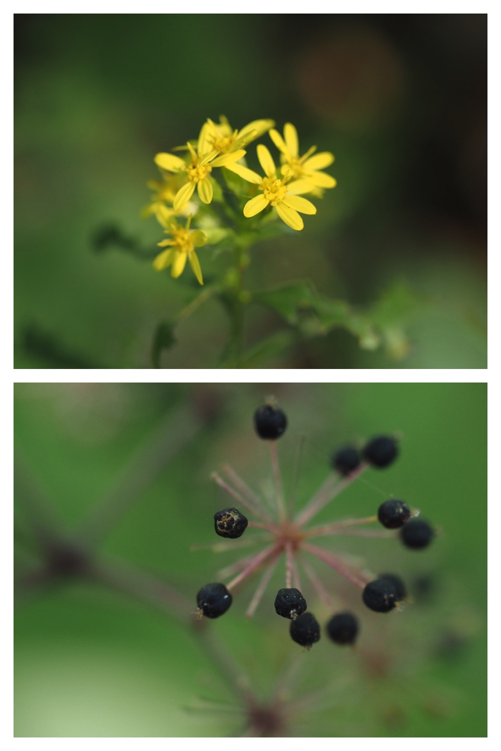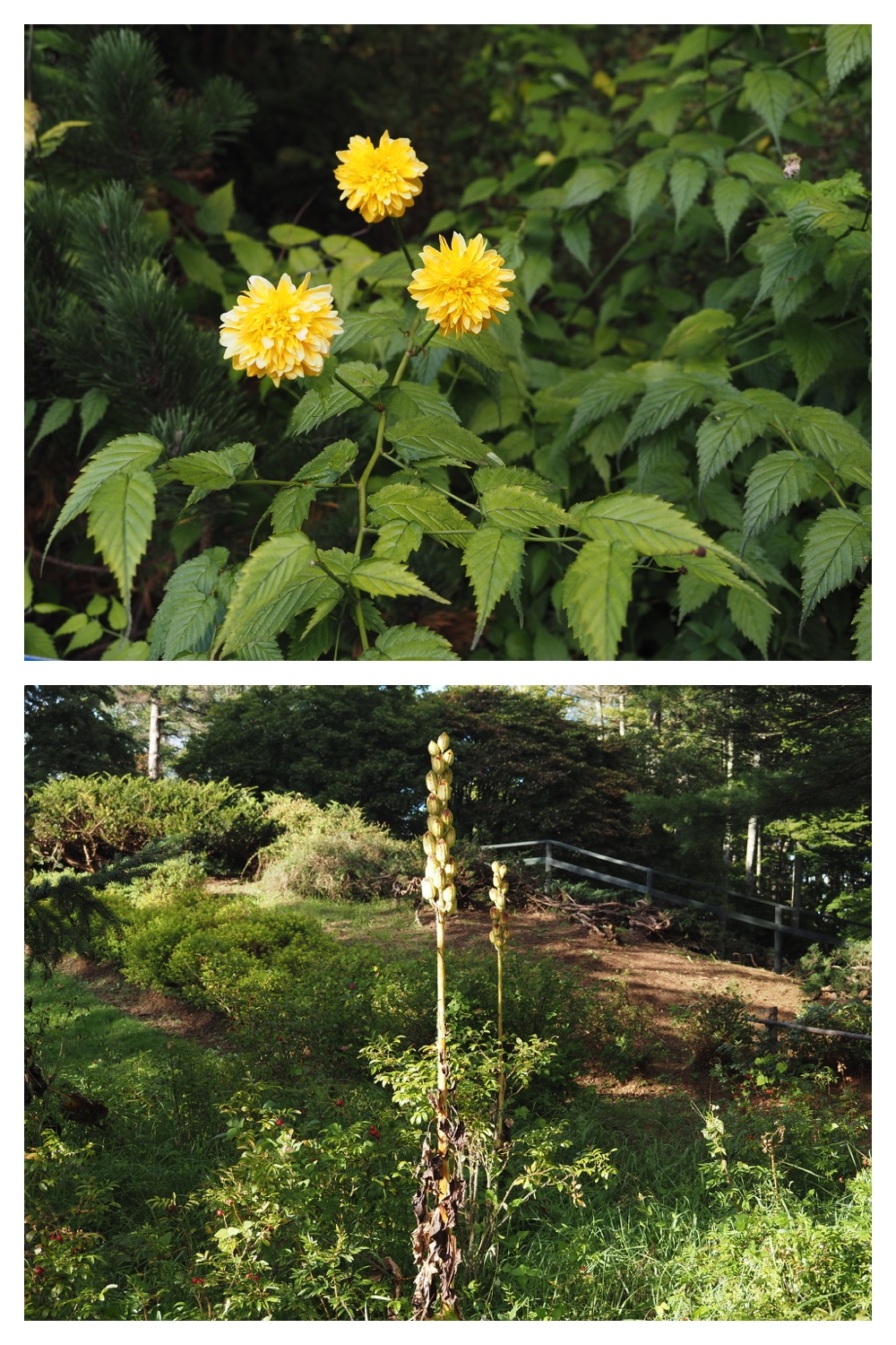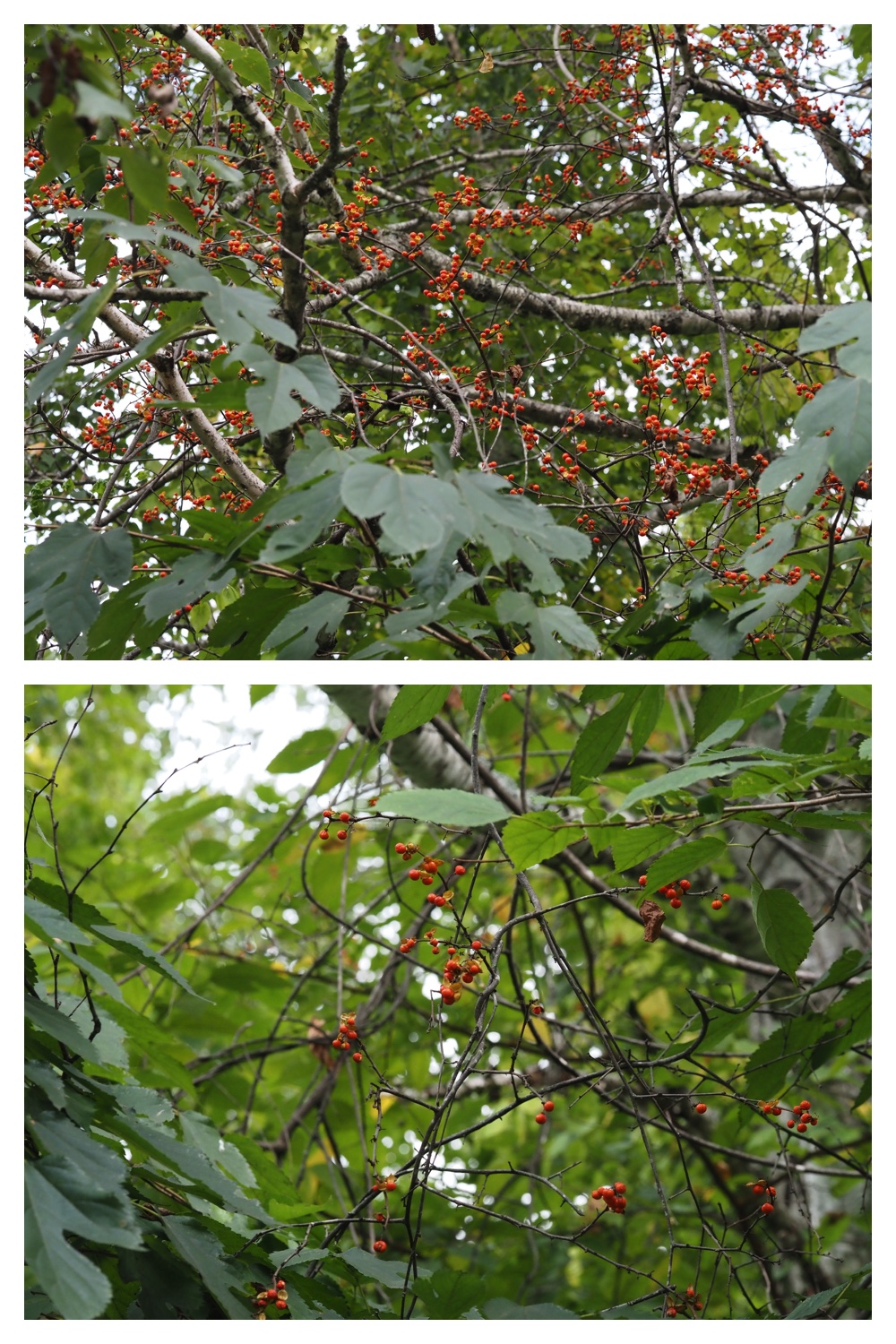 オオイタドリの花(上)、チョウセンゴミシの実(下)