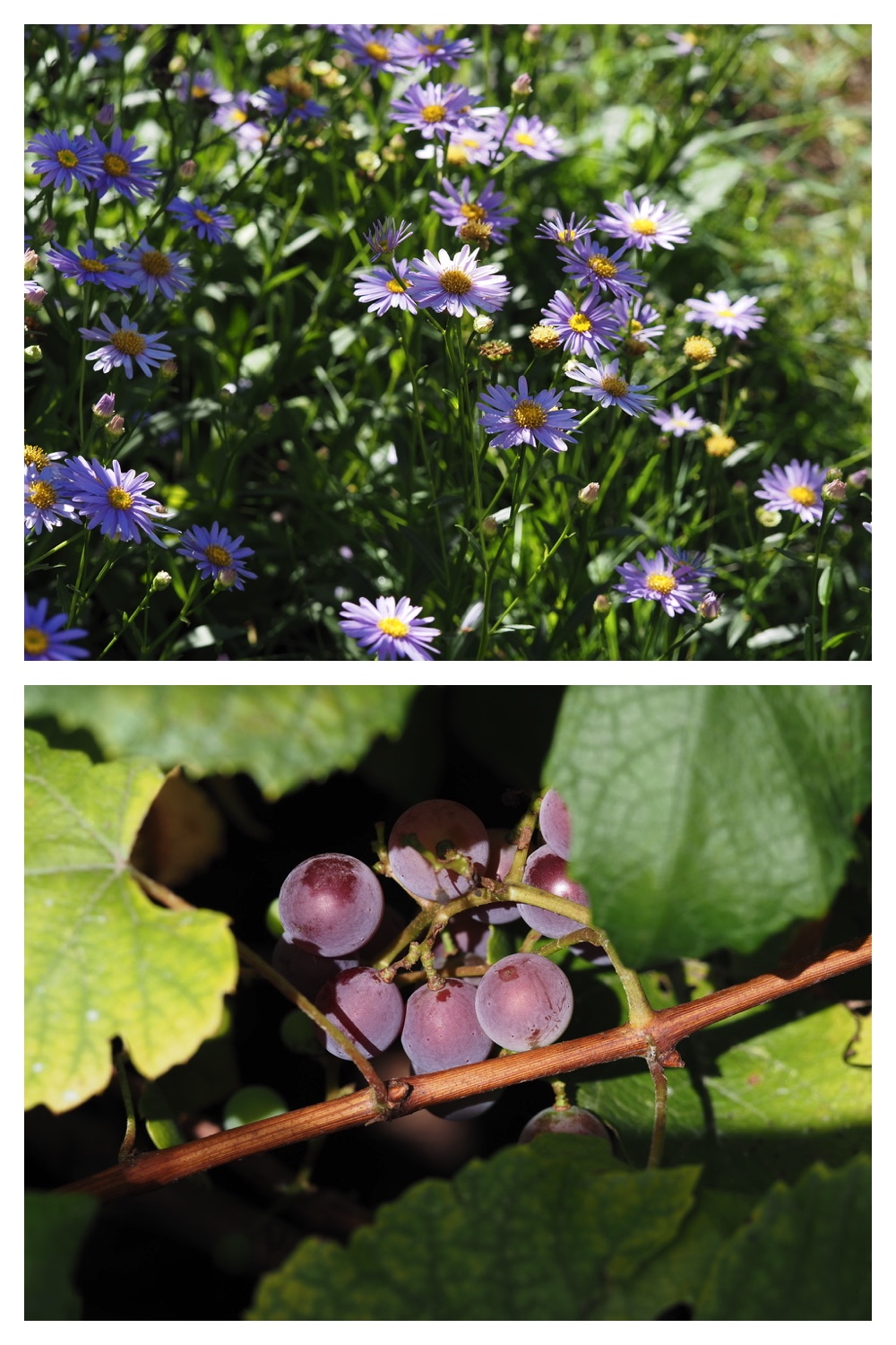 家のブドウの実(上)、チョウセンヨメナ(下)