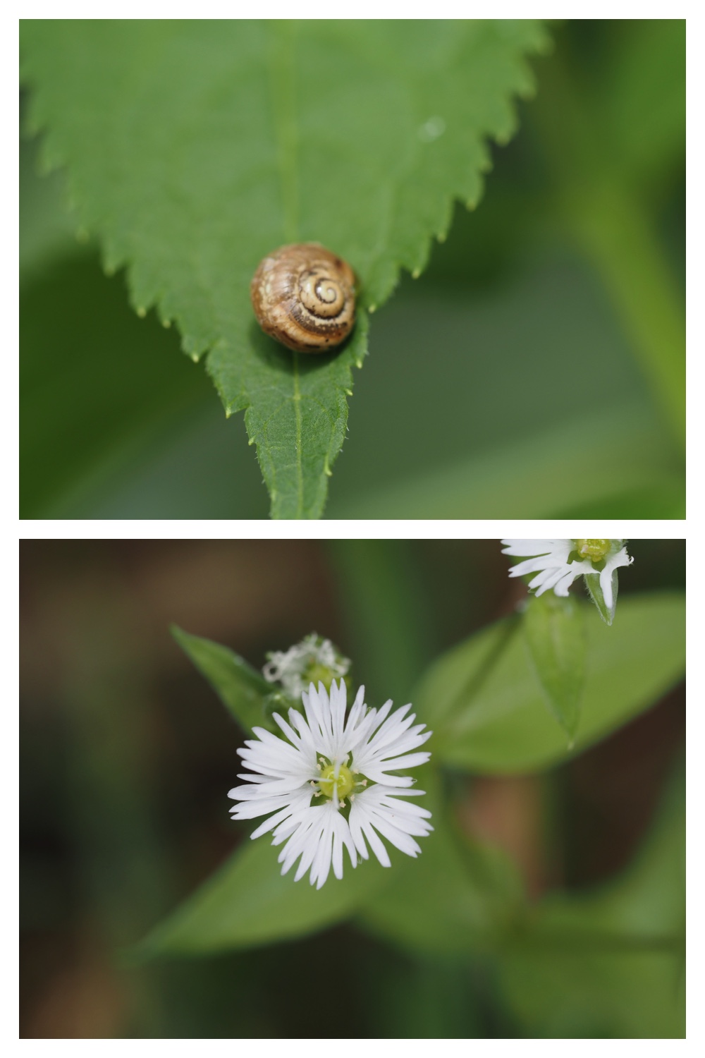 アオイスミレの葉(上)、ゲンノショウコの花(下)