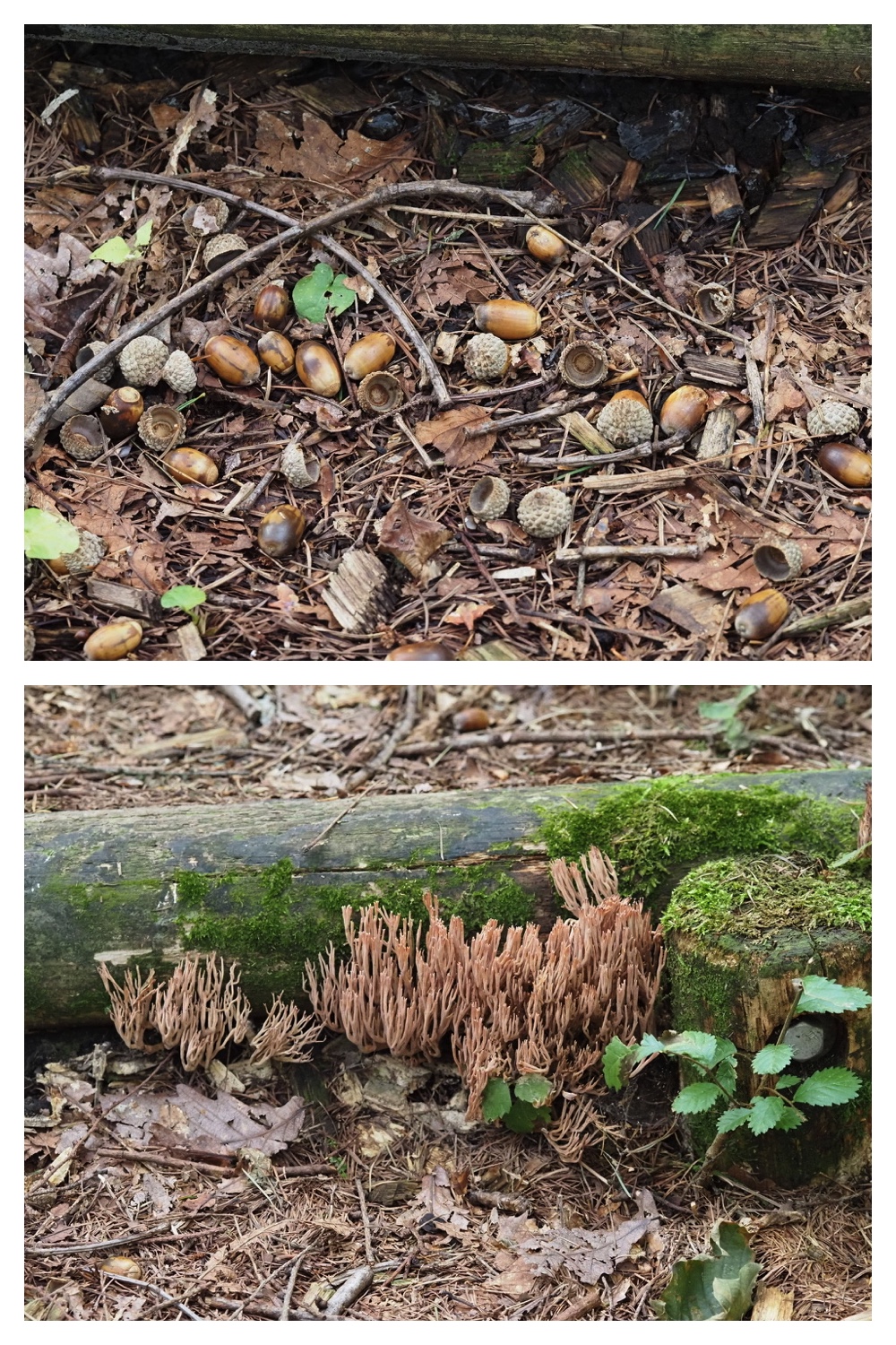 8月30日も機関庫川の堤防から農業高校の森にかけて散歩しました。午後少し風が吹いていたので、家の向かい側にあるカシワの木からドングリがバラバラと降り始めました。シラカバも小さな羽根のある種子を飛ばし始めました。道沿いの草花もそれぞれ実を着け始めました。森の中ではタマゴタケが出始め、林床で休んでいたオオウラギンスジヒョウモンの写真を撮ることができました。