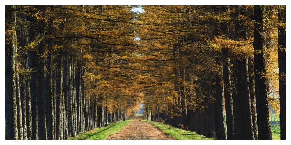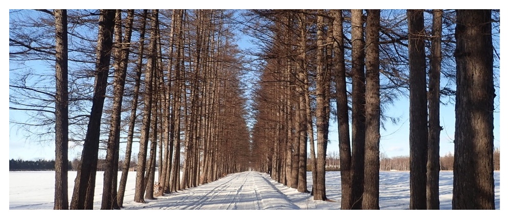 農業高校のカラマツ並木。(上)、 農業高校の森の第3林班。(下)