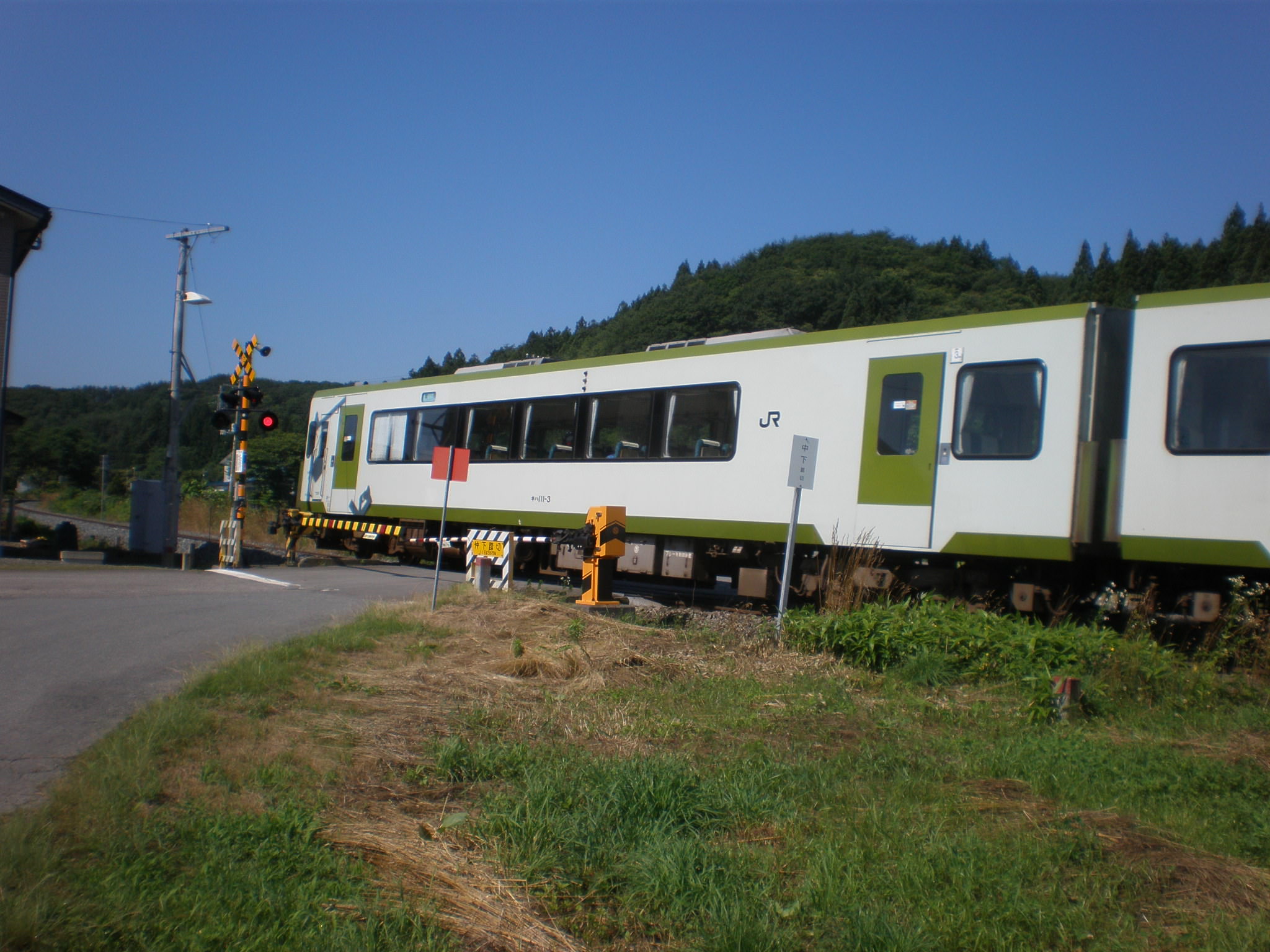 山田線豊間根駅付近の踏切。Railway crossing near Toyomane station.