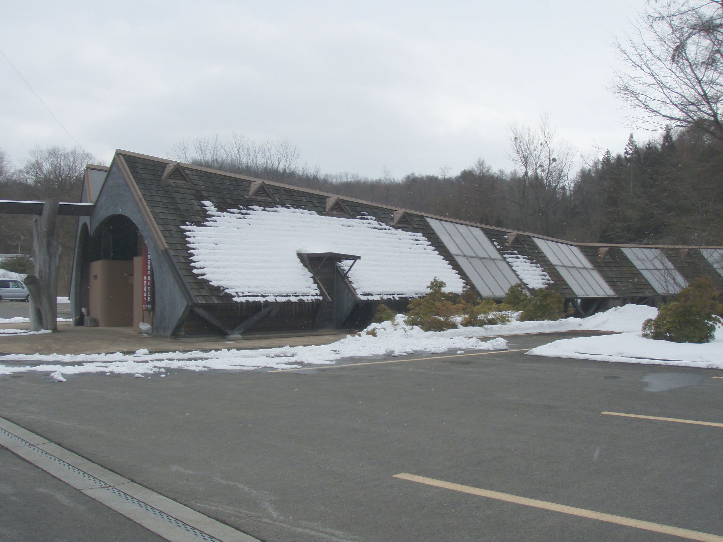 一戸駅で降りてタクシーで御所野遺跡へ。御所野縄文公園の建物入り口。